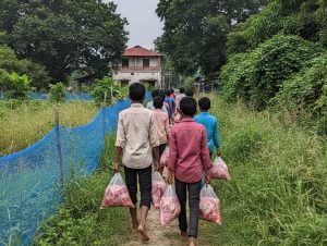 - ত্রাণ বিতরণ